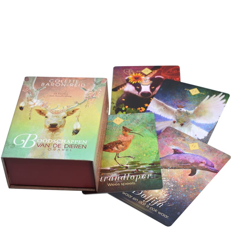 Boodschappen van de Dieren van Colette Baron-Reid is een inspirerende set orakelkaarten die de diepe symboliek en lessen van het dierenrijk verkent. Elke kaart toont een prachtig geïllustreerd dier, weergegeven in levendige kleuren en met gedetailleerde afbeeldingen, ontworpen om de gebruiker in contact te brengen met de spirituele boodschappen van de natuur.