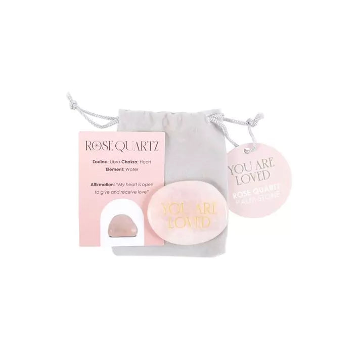 Bekend als de steen van onvoorwaardelijke liefde, helpt het je hart te openen, te genezen en te troosten. Een zachte trekkoordtas is inbegrepen voor veilige bewaring, evenals een kaart die de spirituele voordelen van het product uitlegt. You Are Loved Rose Quartz Crystal Palm Stone is een speciale herinnering aan liefde, of je het nu aan iemand geeft of voor jezelf houdt.